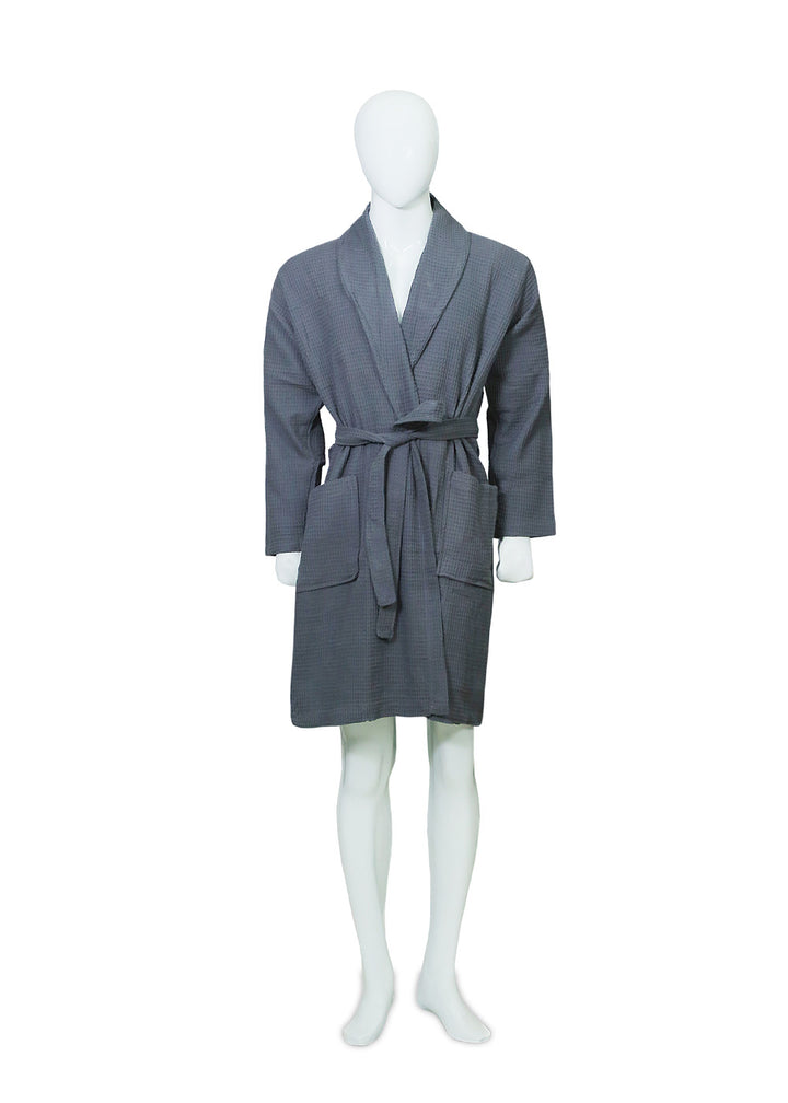 Charcoal Waffle Weave Bathrobe - Lightweight & Absorbent