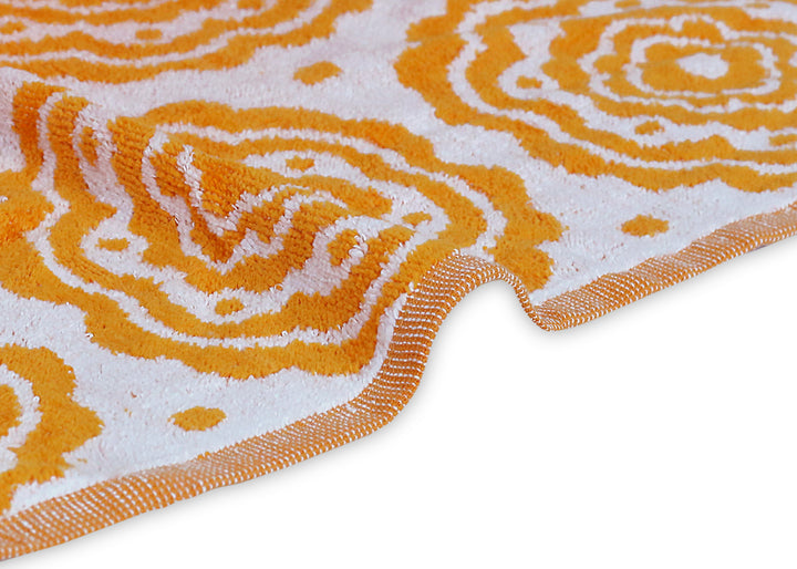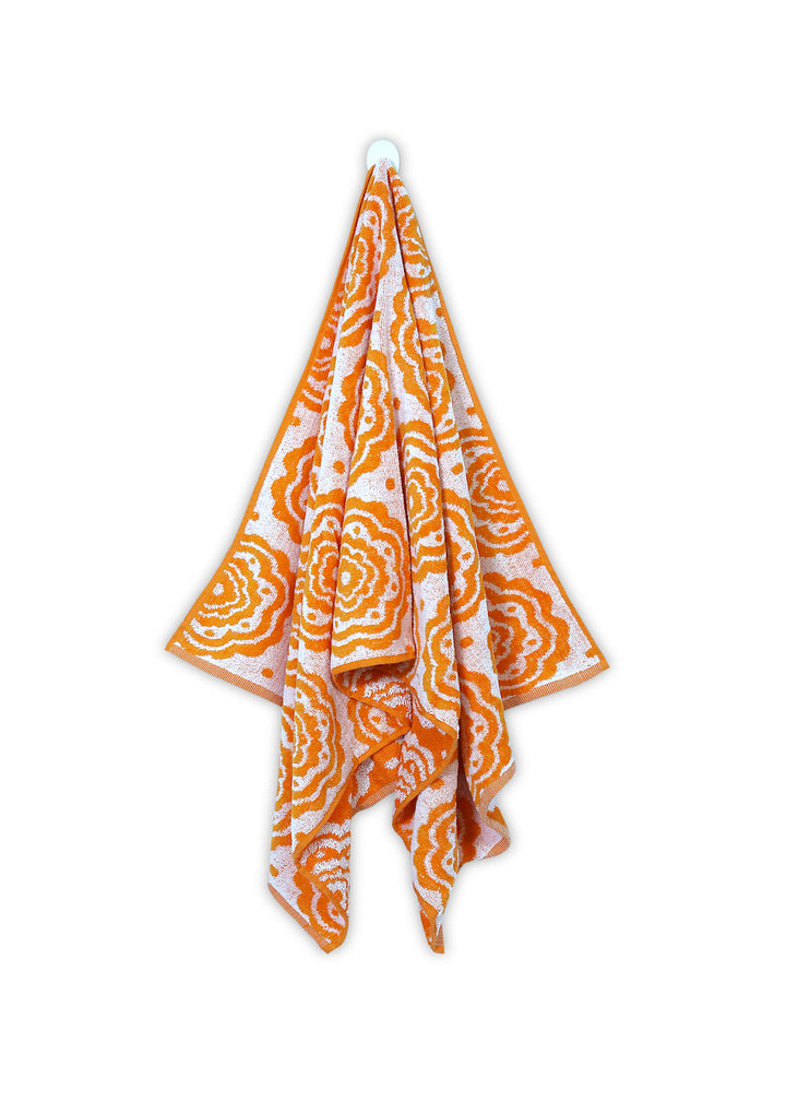 Bring a pop of bright energy to your bathroom with our Orange & White Patterned Bath Towel. This towel features a lively circular pattern in a vibrant orange and crisp white, adding a cheerful and modern touch to your decor. Crafted from premium 100% cotton, it is incredibly soft and absorbent, providing a luxurious and quick-drying experience. This durable and stylish towel is the perfect way to add warmth and a splash of color to your daily routine.