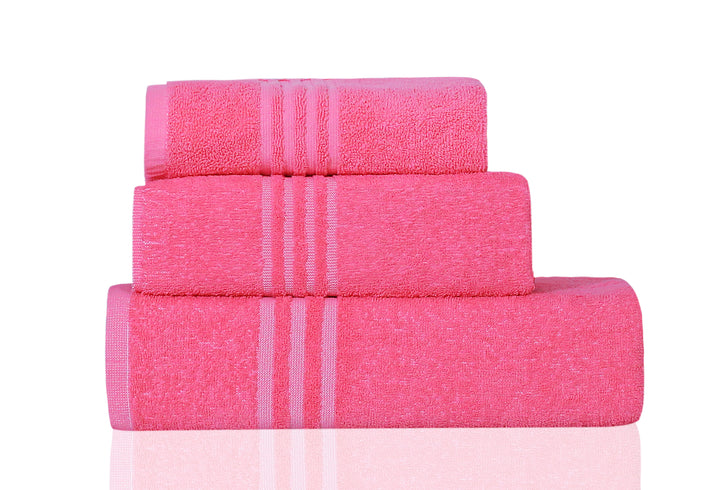 Upgrade your bathroom essentials with our Crossline Pink Towel Set. This premium 3-piece bundle includes a large bath towel, a soft hand towel, and a matching bath mat — all crafted from 100% cotton for superior comfort and absorbency. The bold pink shade with a stylish crossline design adds a lively, modern touch to your space.
