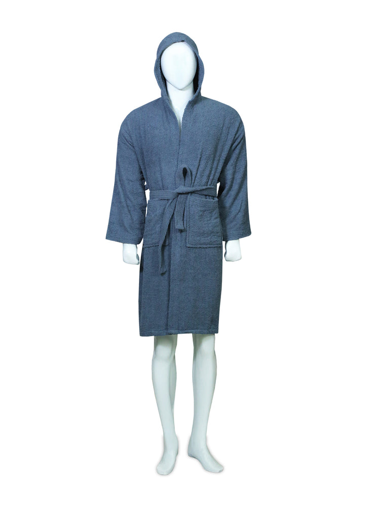 Treat yourself to a new level of relaxation and style. Order your Dusty Blue Plush Hooded Bathrobe from Bachat Towels today!