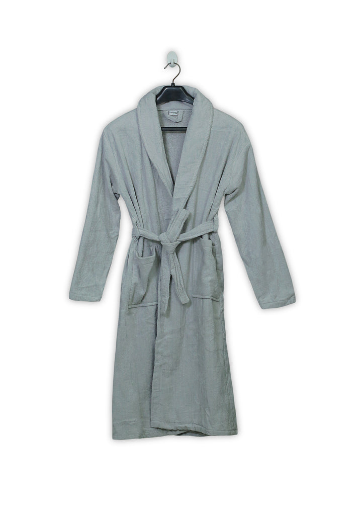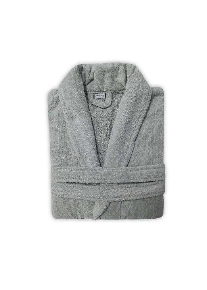 Silver Grey Shawl Collar Bathrobe - Elegant & Absorbent