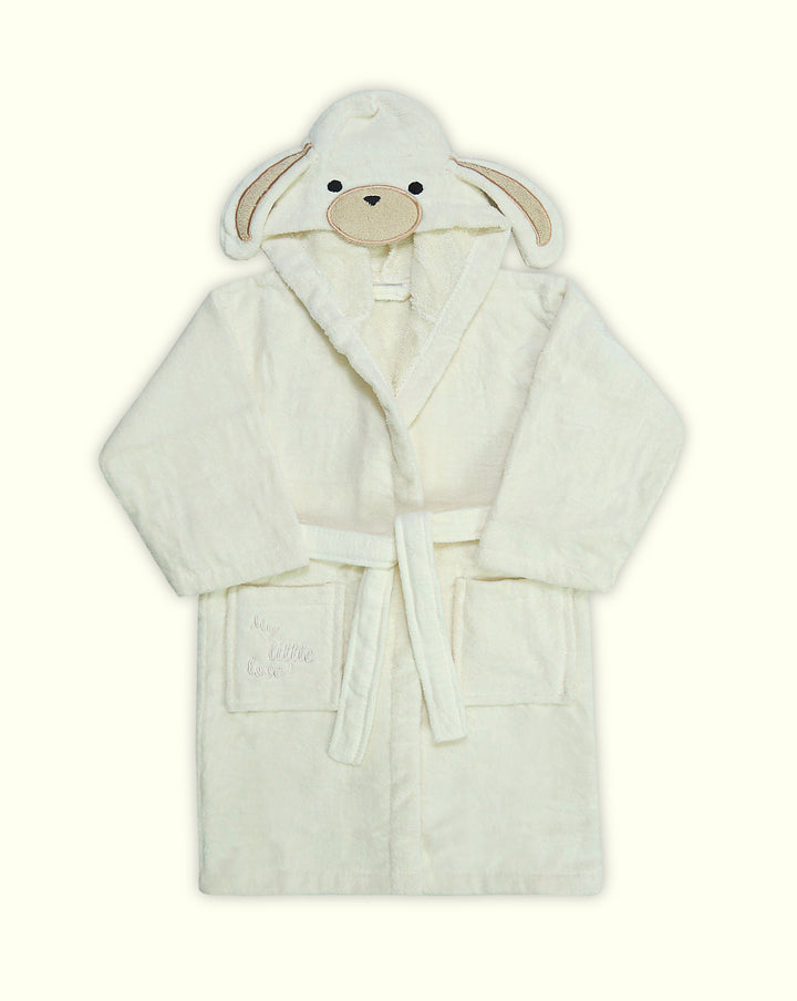 Featuring an enchanting puppy-eared hood and a simple, classic design, this bathrobe is sure to become a favorite. The cute hood helps to dry hair and keep little heads warm, while the durable waist tie ensures a secure and adjustable fit. Its natural color and timeless look mean it’s perfect for any child.
